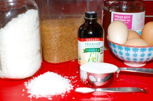 Starting with David Lebovitz’s fantastic recipe, I doctored the ingredients a bit to cut back on sugar and add in whole wheat flour. You could also substitute the flour with almond or another nut meal for a gluten-free/Kosher-for-passover version. Do make these with your kids – older ones can probably do all the steps on their own, and it is a great excuse to teach how to separate eggs.